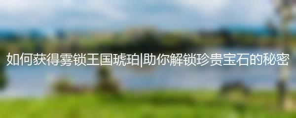 如何获得雾锁王国琥珀|助你解锁珍贵宝石的秘密