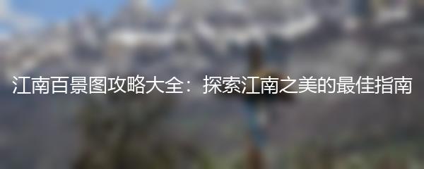 以上就是为大家带来的江南百景图攻略大全。江南地区以其丰富多彩的自然风光、悠久的历史文化和独特的美食,吸引着无数游客前来探索。无论你是热爱自然之美、追寻历史之足迹,还是品味美食之享受,江南都能满足你的需求。快来一场说走就走的江南之旅吧!