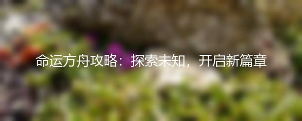以上就是为大家带来的《命运方舟攻略:探索未知,开启新篇章》。希望这些攻略和技巧能够帮助到你,让你在命运方舟中取得更出色的成绩!加油!