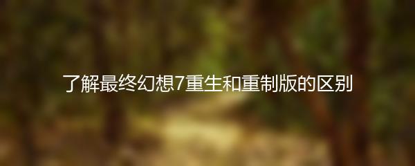 以上就是为大家带来的《了解最终幻想7重生和重制版的区别》的内容总结。