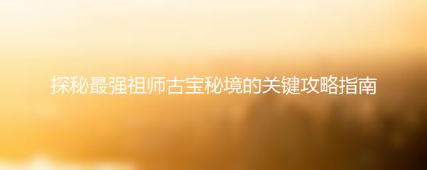 以上就是为大家带来的探秘最强祖师古宝秘境的关键攻略指南。揭开秘境的门户,策划优质的装备,解读秘籍与谜题,战胜守护者和怪物,悟道至高无上的真谛,这些才是通往宝藏背后的关键所在。只有准备充分,运用智慧和勇气,相信你也能成功征服最强祖师古宝秘境,获得你梦寐以求的宝藏。
