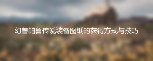 幻兽帕鲁传说装备图纸的获得方式与技巧