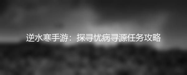 以上就是为大家带来的逆水寒手游中忧病寻源任务的攻略。希望这些内容能够帮助各位玩家更好地应对挑战,顺利地完成游戏中的任务。祝大家在逆水寒的世界中玩得开心!