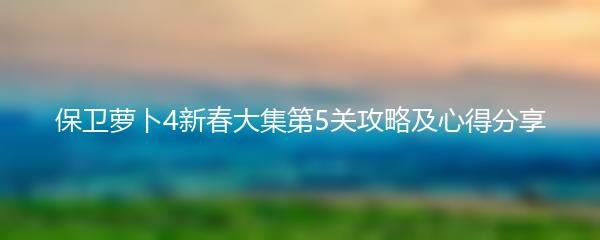 以上就是为大家带来的《保卫萝卜4新春大集第5关攻略及心得分享》。希望这些攻略和心得能够帮助到各位玩家,早日顺利通关。祝各位玩家游戏愉快!