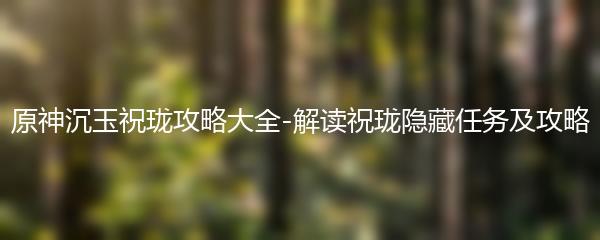原神沉玉祝珑攻略大全-解读祝珑隐藏任务及攻略