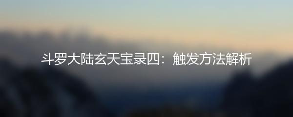 通过完成史莱克学院的特训任务、挑战斗罗大陆强大的魂师、在魂兽森林中寻找魂环、魂骨和魂核、参加选拔赛以及完成其他秘密任务等方式,就可以触发斗罗大陆玄天宝录四。这将为魂师们带来巨大的力量和机遇。