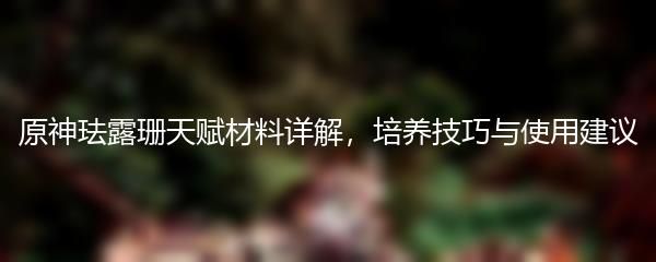 原神珐露珊天赋材料详解,培养技巧与使用建议