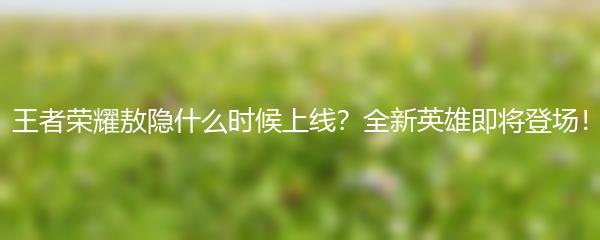 王者荣耀敖隐什么时候上线?全新英雄即将登场!