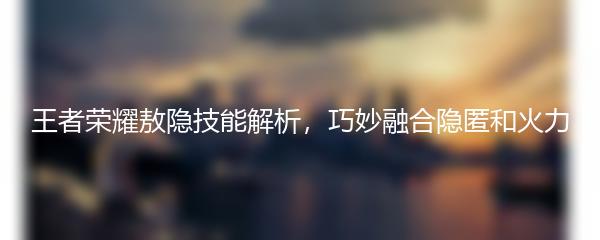 王者荣耀敖隐技能解析,巧妙融合隐匿和火力