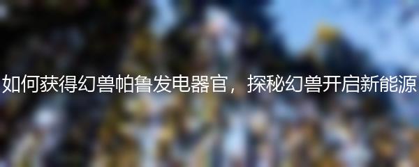 幻兽帕鲁是一种神秘的生物,它具有惊人的生命能量和强大的发电器官。如何获得幻兽帕鲁发电器官,成为了许多人的研究焦点。本文将为您揭秘幻兽帕鲁发电器官的获取方法以及其在开启新能源方面的潜力。