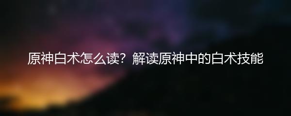 以上就是为大家带来的《原神白术怎么读?解读原神中的白术技能》。通过本文的介绍,相信大家对原神中的白术技能有了更深入的了解,希望能够帮助到各位玩家更好地使用和发挥白术技能的作用。