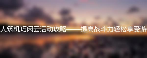 仙人筑机巧闲云活动的成功与否,与角色的战斗力息息相关。在活动前,玩家可以通过以下几种方式来提升角色的战斗力: