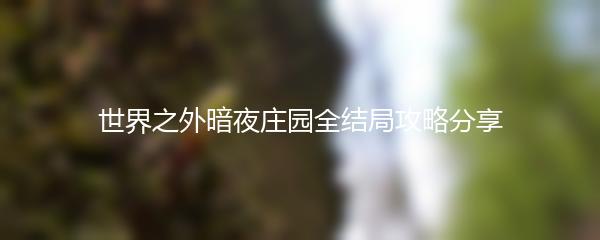 大家好,今天为大家带来一篇关于世界之外暗夜庄园全结局攻略的文章。在这篇文章中,我们将详细介绍如何达成暗夜庄园的全结局并获得丰厚奖励。无论你是新手还是老玩家,相信这些攻略都会对你有所帮助。