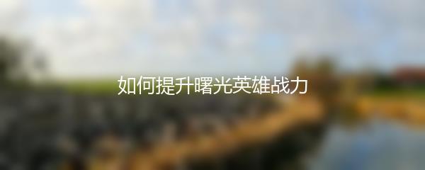 以上就是为大家带来的如何提升曙光英雄战力的方法。希望对您有所帮助,快快行动起来吧!