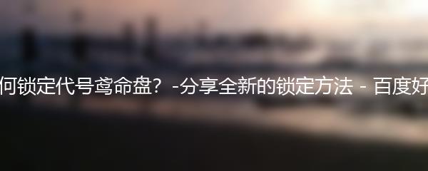 如何锁定代号鸢命盘?-分享全新的锁定方法 - 百度好耶