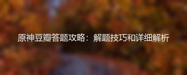 原神豆瓣答题是玩家们在游戏中遇到的一项挑战。想要在这个活动中取得好成绩,就需要掌握一些解题技巧和相关的知识。本文将为大家介绍一些解题技巧和详细解析,帮助玩家们在原神豆瓣答题中取得优秀的成绩。