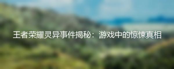 王者荣耀是现如今备受热爱的手机游戏之一,然而,在这个虚拟的游戏世界中,竟然隐藏着一些令人毛骨悚然的灵异事件。今天,我们将揭秘王者荣耀中那些令人胆寒的真相。