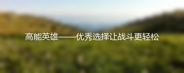 以上就是为大家带来的“高能英雄——优秀选择让战斗更轻松”的内容,希望能为大家提供一些有用的信息。