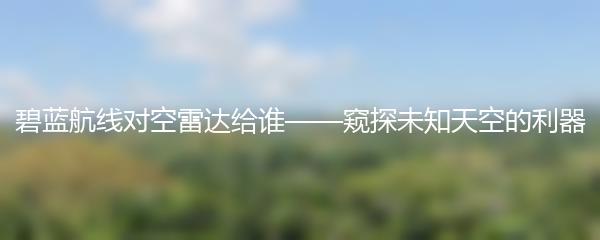 碧蓝航线对空雷达给谁——窥探未知天空的利器