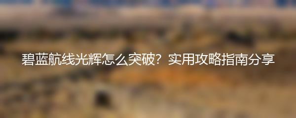 碧蓝航线光辉怎么突破?实用攻略指南分享
