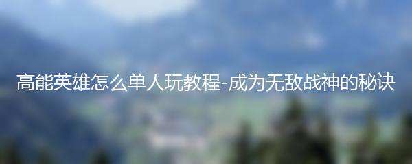 高能英雄怎么单人玩教程-成为无敌战神的秘诀