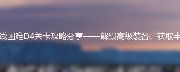 碧蓝航线困难D4关卡攻略分享,帮助玩家解锁高级装备、获取丰厚奖励。