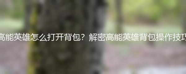 高能英雄怎么打开背包?解密高能英雄背包操作技巧