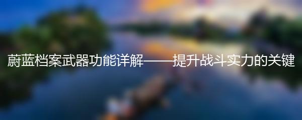 蔚蓝档案是一款备受玩家喜爱的游戏,而武器功能则是这款游戏中不可或缺的要素之一。本文将详细介绍蔚蓝档案武器功能,帮助玩家更好地了解游戏,提升战斗实力。