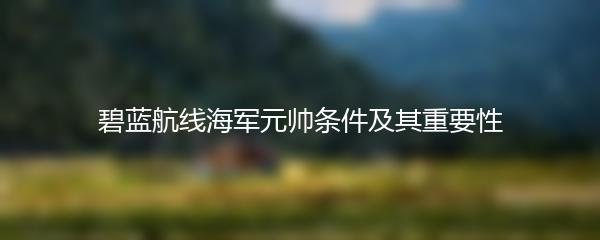 成为碧蓝航线的海军元帅具有重要的意义和作用: