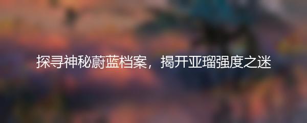 蔚蓝档案是一份记录着无数超自然现象和力量的档案,据传是由一个古老的组织创造的。档案中记载了各种神秘现象,包括超能力、灵魂探索和神奇物体等等。而其中最为令人着迷的就是亚瑠强度。