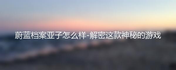 蔚蓝档案亚子怎么样-解密这款神秘的游戏