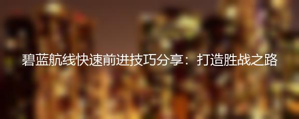 碧蓝航线快速前进技巧分享:打造胜战之路