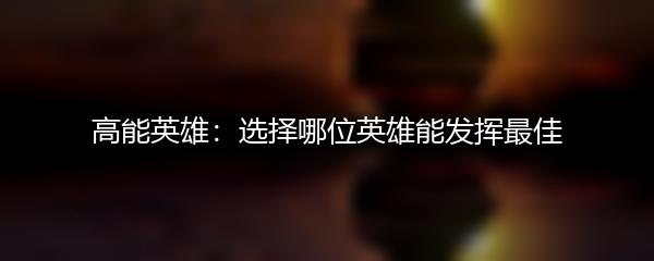 以上就是为大家带来的“高能英雄:选择哪位英雄能发挥最佳”的内容。在游戏中选择英雄时,请根据自己的游戏操作风格和队伍需要进行选择,找到适合自己的英雄,并发挥出最佳水平。
