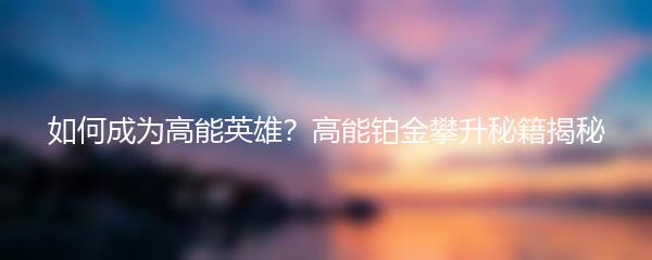 如何成为高能英雄?高能铂金攀升秘籍揭秘