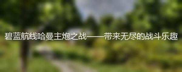 碧蓝航线哈曼主炮之战——带来无尽的战斗乐趣