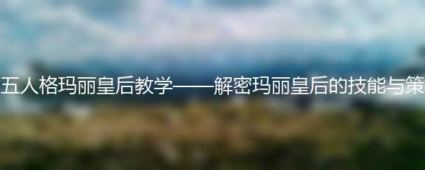 第五人格是一款备受期待的多人在线对战游戏,其中玛丽皇后作为一个强大的角色备受关注。在本篇文章中,我们将详细介绍第五人格玛丽皇后的技能与策略,以帮助你在游戏中取得更多的胜利。
