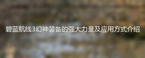碧蓝航线3幻神装备的强大力量及应用方式介绍