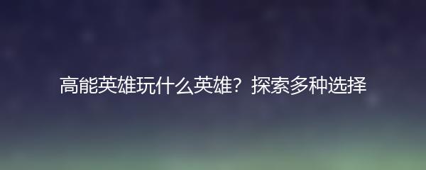 高能英雄玩什么英雄?探索多种选择