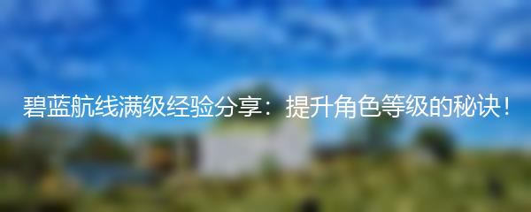 碧蓝航线满级经验分享:提升角色等级的秘诀!