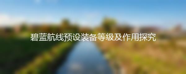 碧蓝航线预设装备等级是玩家们在游戏中需要重点关注的一个方面。了解预设装备等级的作用对于提升舰队战斗力和游戏体验至关重要。