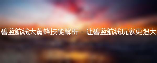 碧蓝航线大黄蜂技能解析 - 让碧蓝航线玩家更强大