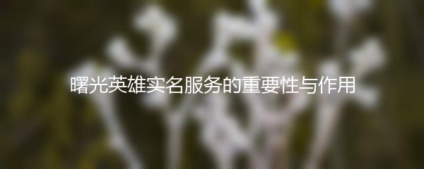 曙光英雄是一款备受玩家喜爱的网络游戏,而实名服务在其中起着重要的作用。在这篇文章中,我们将探讨曙光英雄如何重新实名服务,以及实名服务的重要性。