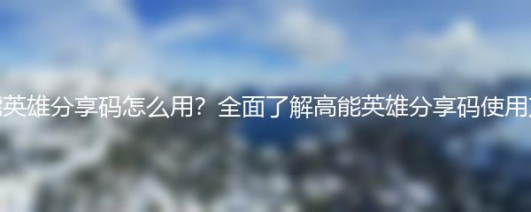以上就是为大家带来的 "高能英雄分享码怎么用?" 的全面介绍。希望通过本文的解释和指导,玩家们能够更好地利用高能英雄分享码,享受游戏带来的乐趣和福利。