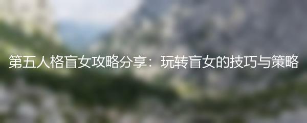 大家好!今天我们来分享一下关于第五人格盲女的攻略。在这篇文章中,我们将为您介绍一些玩转盲女的技巧与策略,希望对您在游戏中的胜率有所帮助。