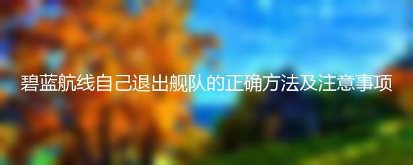 碧蓝航线自己退出舰队的正确方法及注意事项