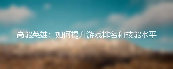 以上就是为大家带来的“高能英雄:如何提升游戏排名和技能水平”。