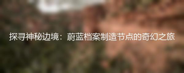许多探险家梦寐以求能一窥蔚蓝档案制造节点的秘密。他们穿梭于山林之间,探寻着隐藏在神秘节点中的宝藏和秘笈。