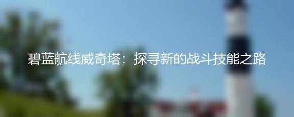 碧蓝航线威奇塔是一款备受玩家喜爱的战斗游戏,其中威奇塔的技能一直是玩家们关注的焦点。如何探寻并提升威奇塔的战斗技能,是每位玩家都想要解决的难题。