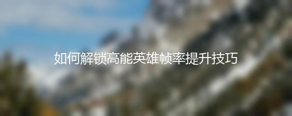 以上就是为大家带来的如何解锁高能英雄帧率提升技巧,希望对各位游戏玩家有所帮助。