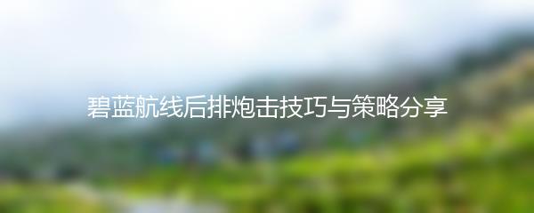 以上就是为大家带来的碧蓝航线后排炮击技巧与策略分享。希望对大家在游戏中的后排炮击有所帮助,祝各位指挥官游戏愉快!